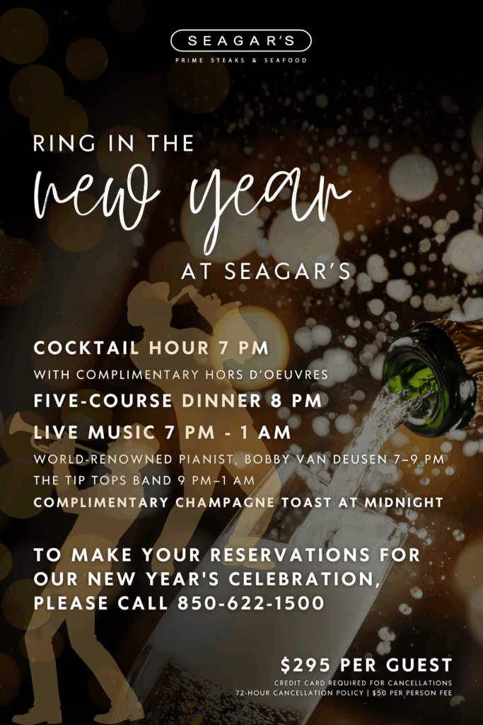 Established in 1998, Seagar’s Prime Steaks & Seafood is a top New York style steakhouse on Florida’s Gulf Coast, near Destin. Known for its impressive 600-label wine list and exceptional Prime USDA steaks, Seagar’s offers a unique dining experience. Whether for a private event or a romantic dinner, the team ensures personalized service.