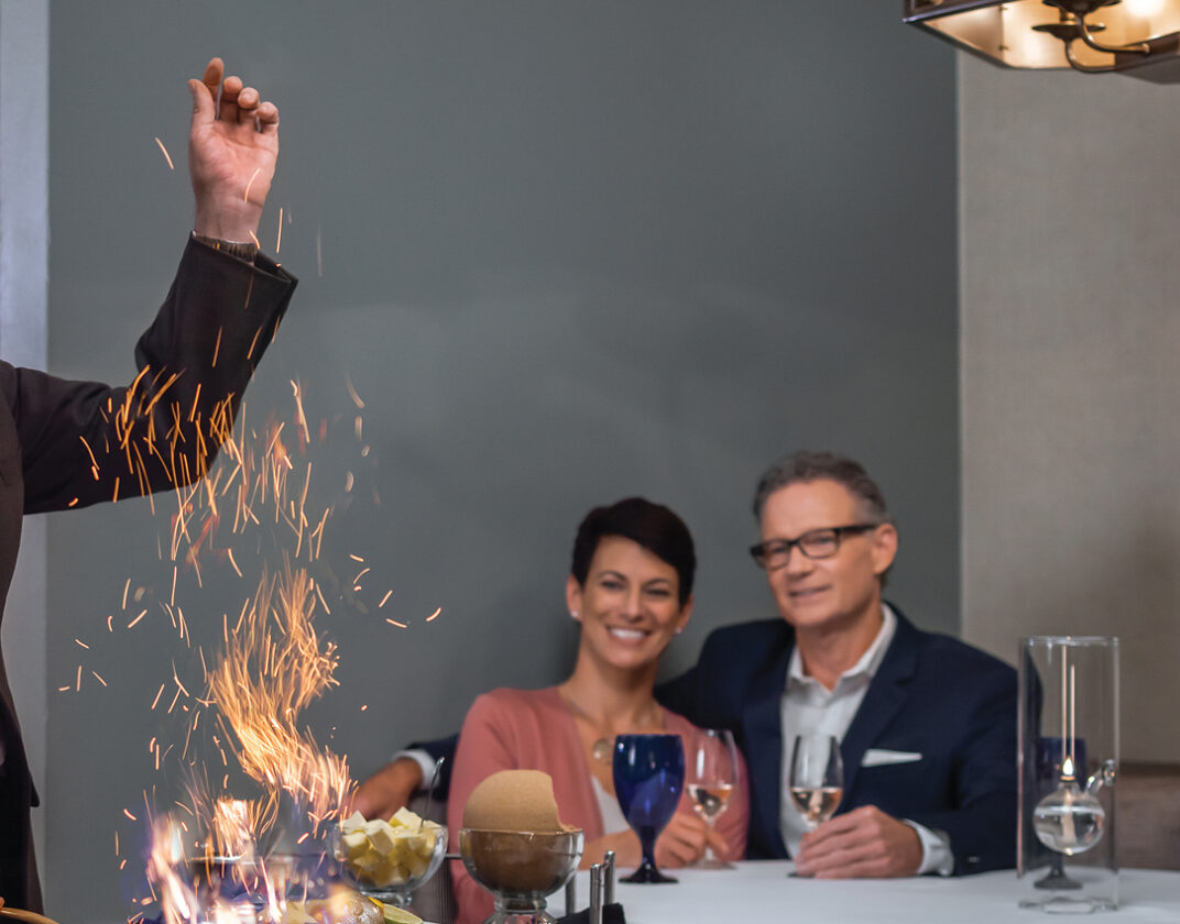 Bringing back the traditional elegance of fine-dining, Seagar’s Prime Steaks & Seafood ensures each diner’s experience is distinctive from the next. One way this is held true is through the tableside preparations of exclusive Seagar’s menu items — including the Caesar Salad for Two, Steak Diane, and Bananas Foster. From preparation to completion, the process of tableside service is a sight to be treasured.